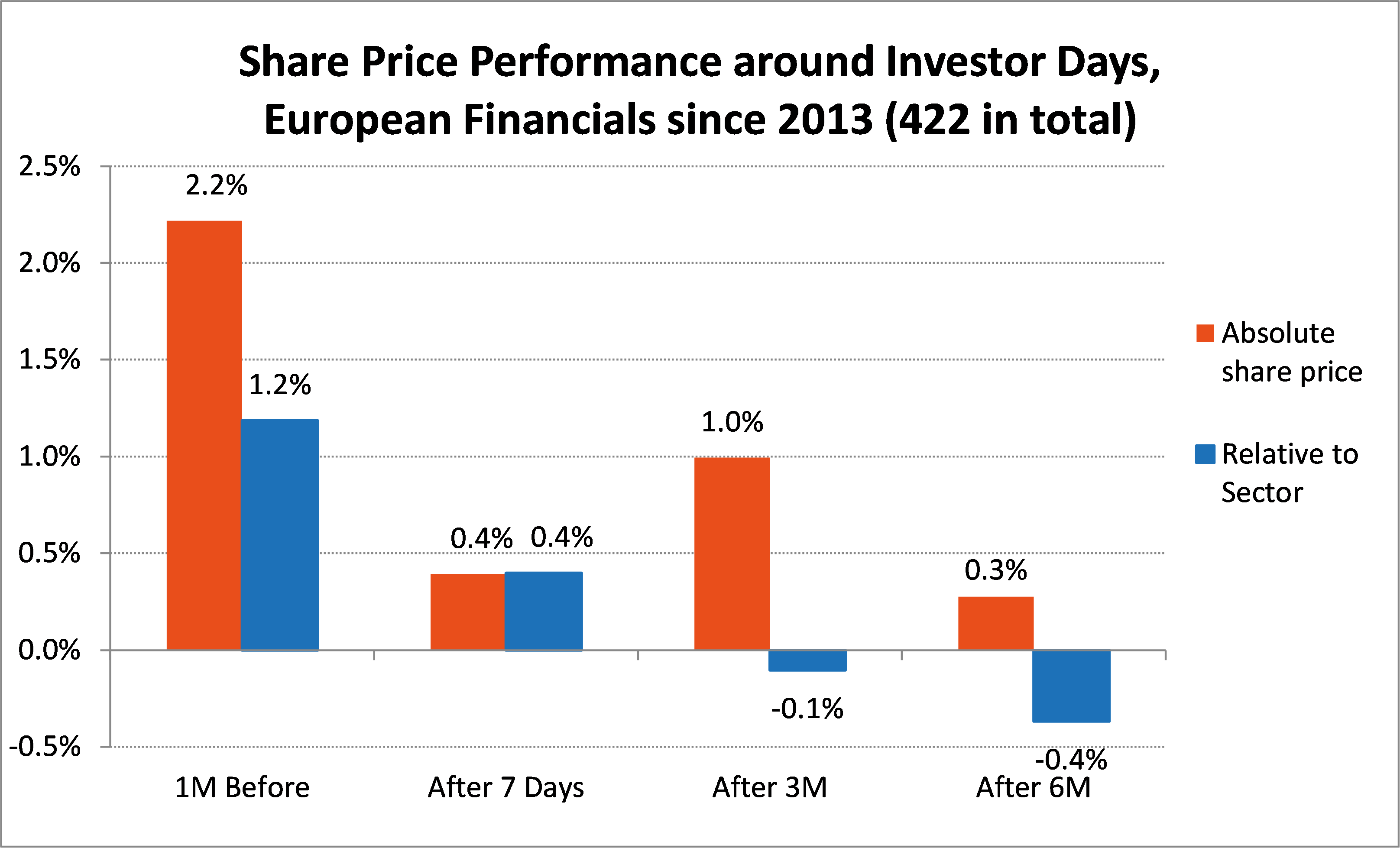 The near-term share price performance is of course only one measure of success. If share price outperformance relative to the sector following an Investor Day is so hard to achieve, why are these events so popular? Why bother hosting an Investor Day?